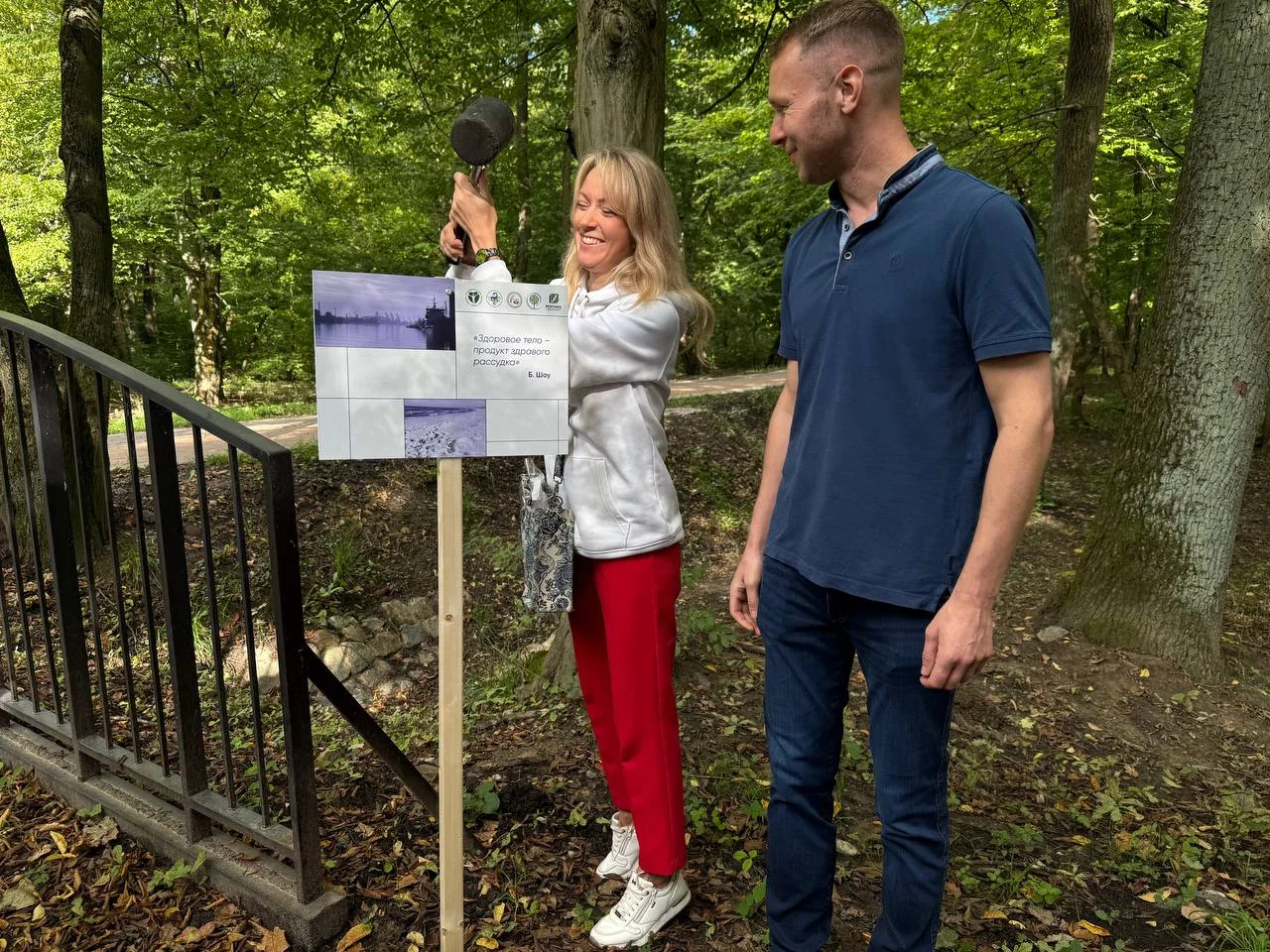 О пользе таких прогулок гостям парка рассказала врач по медицинской профилактике Центра общественного здоровья и медицинской профилактики Калининградской области Наталья Шаповалова: «Тропу создали на основе японской практики синрин-йоку («лесная ванна») для осознанного погружения в атмосферу леса для улучшения физического и психического здоровья. Научно доказано, что пешие прогулки на природе снимают стресс и укрепляют иммунитет. Выработка гормонов счастья возрастает на 10-15 %, а кортизол, наоборот, снижается более, чем на 30. Причем, если гулять два – три часа на регулярной основе, то положительный эффект воздействия