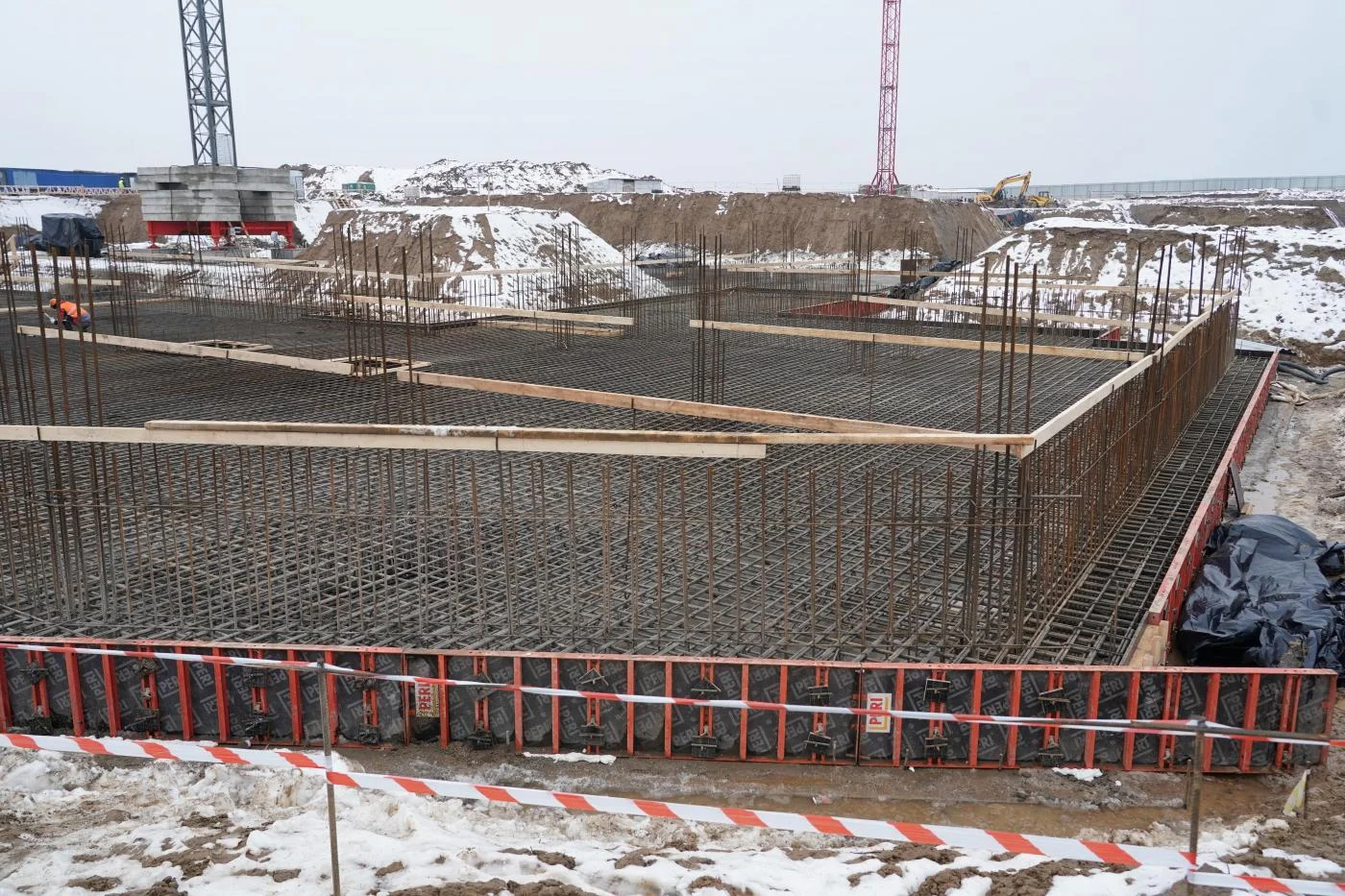 В настоящее время на площадке активно работают строительные бригады и техника. Завершается устройство котлованов, ведутся фундаментные, в том числе гидроизоляционные работы. Сегодня началась заливка плиты пятого корпуса онкоцентра.