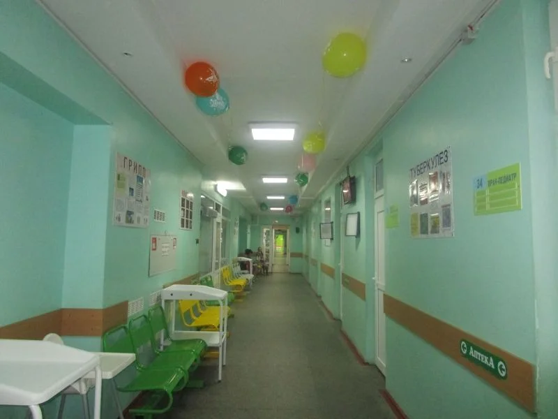 Два зала расположены в противоположных частях учреждения здравоохранения. Здесь есть все, для того чтобы занять или развеселить детишек, которые пришли на прием к врачу: качалки разных форм и размеров, удобные столики с маленькими стульчиками, телеэкраны, на которых можно посмотреть любимые мультфильмы.